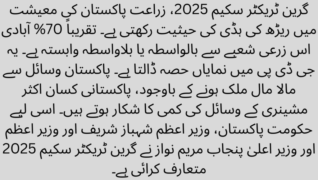 Green Tractor Scheme 2025,Agriculture is the backbone of the economy in Pakistan. Almost 70% of the population is directly or indirectly associated with this agricultural sector. It contributes significantly to the GDP. Despite Pakistan being a resource-rich country, Pakistani farmers often suffer from a lack of machinery resources. For this reason, the government of Pakistan, Prime Minister Shahbaz Sharif and Prime Minister and Chief Minister of Punjab Maryam Nawaz have introduced the Green Tractor Scheme 2025.