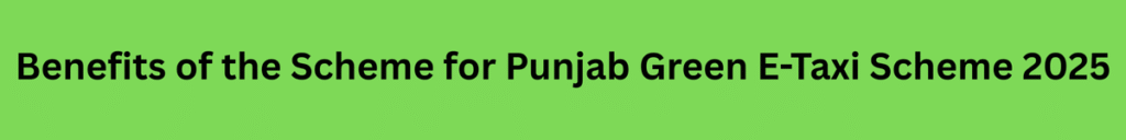 Benefits of the Scheme for Punjab Green E-Taxi Scheme 2025